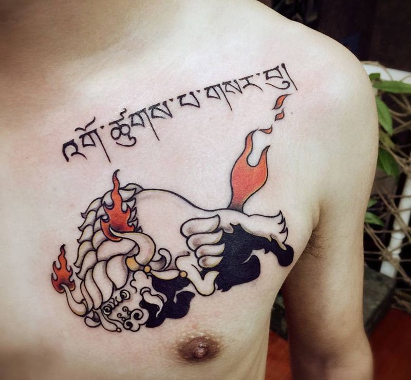 狮子纹身图片_成品手臂欧美清新写实几何动物字符纹身图案