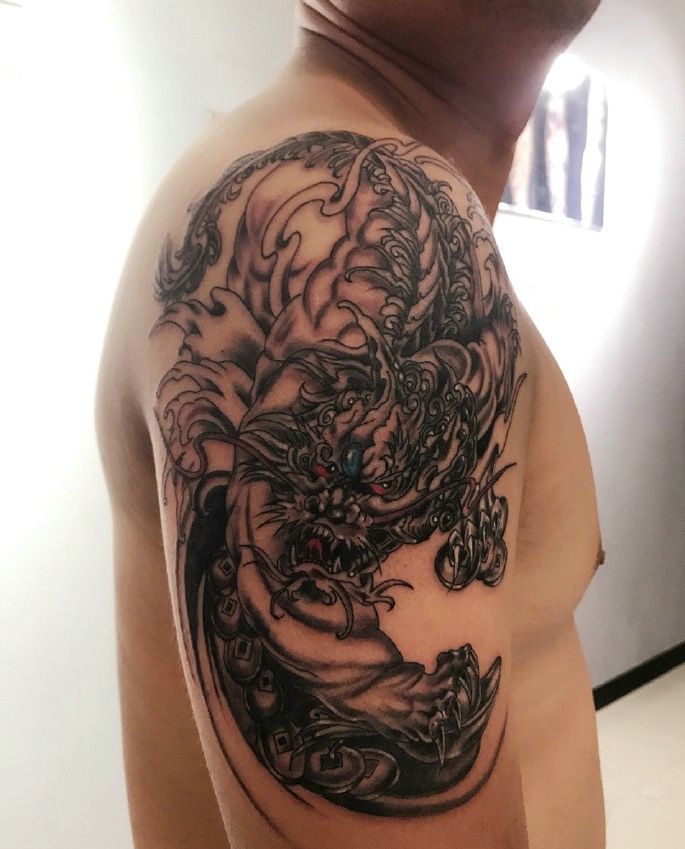 神兽麒麟肩部纹身