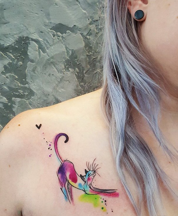 当前位置: 首页 >小猫纹身图案>爱猫人士的小清新猫纹身图片