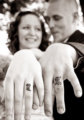 情侣恋人手指关节上的各种指环纹身图案