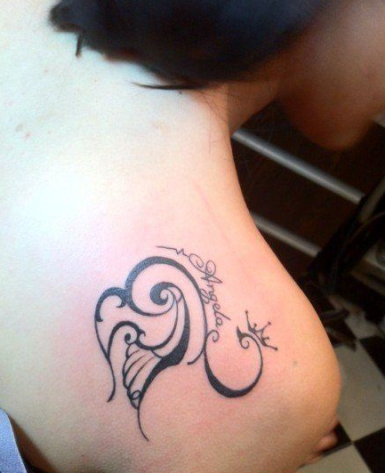 女生肩部好看的图腾天鹅字母皇冠纹身图案