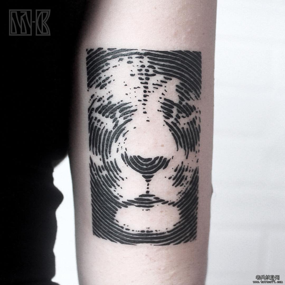 大臂几何线条个性熊猫头像纹身图案