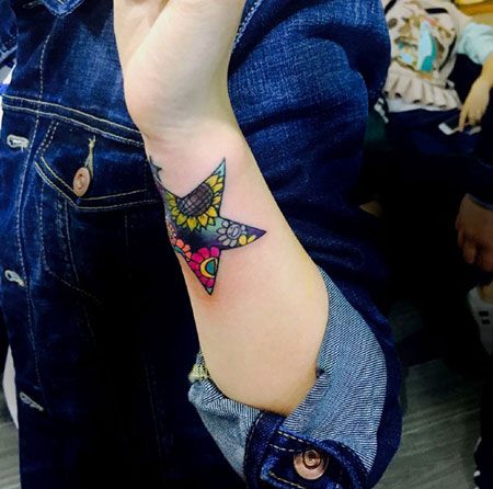 手腕彩绘个性五角星纹身图案