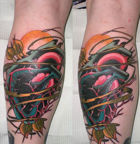 小腿荆棘心纹身图片