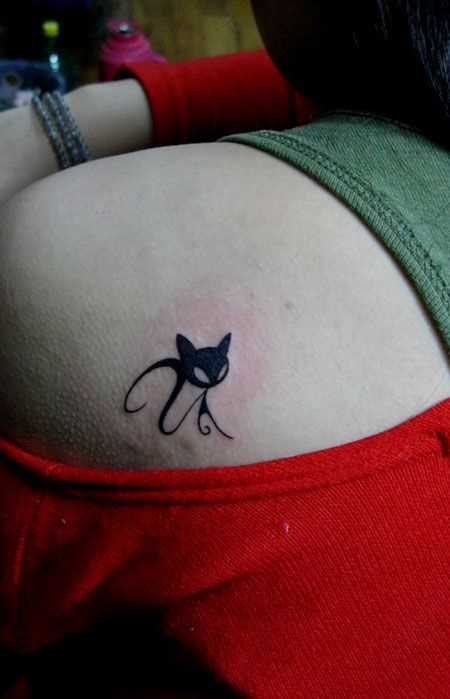 肩部可爱小猫纹身图案