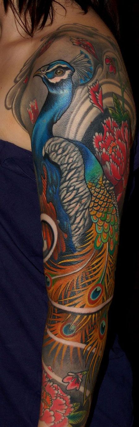 新传统胳膊孔雀纹身图
