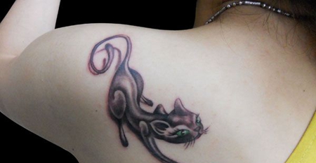 肩部性感的小猫纹身图案