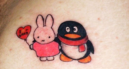 肩部兔子小企鹅纹身图案