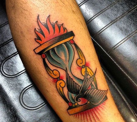 小腿燕子沙漏纹身图案