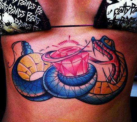 腹部钻石大蛇纹身图案