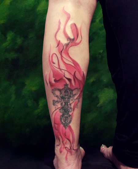 小腿佛杵火焰纹身图案