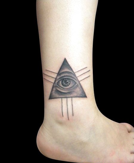 脚踝上的三角形眼睛纹身图案