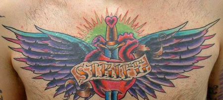 胸部插着匕首的心纹身图案