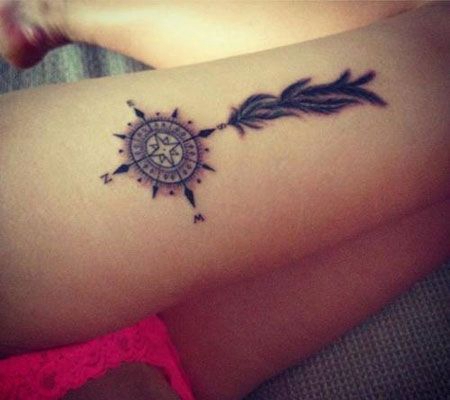 大腿性感的指南针纹身图案