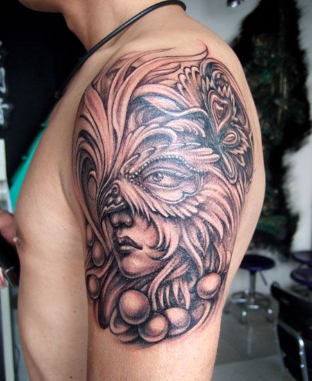 大臂面具美女纹身