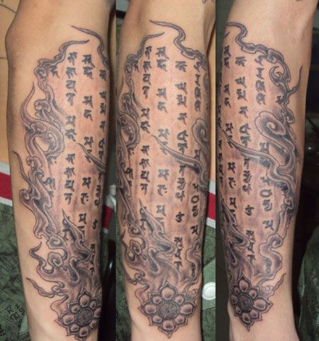 手臂上的经文纹身图案
