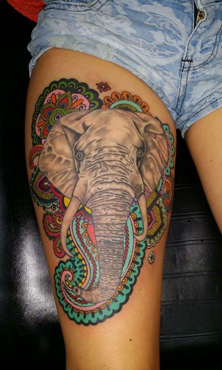 大腿上的大象纹身图案