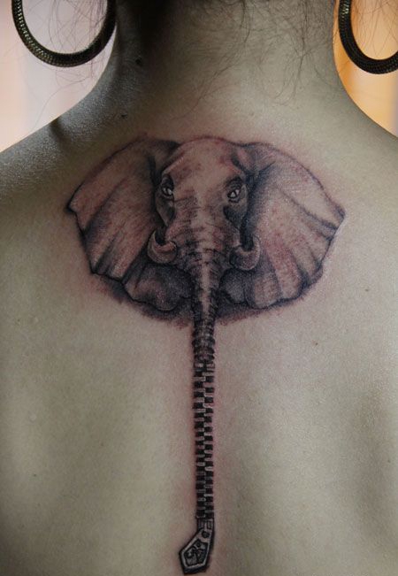 背部大象拉链纹身图案