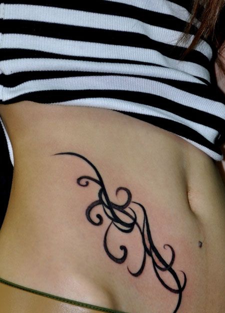 腹部线条藤蔓纹身图案