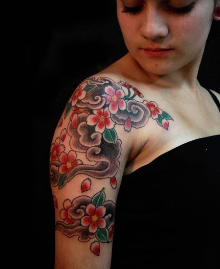 美女手臂上的樱花纹身图案