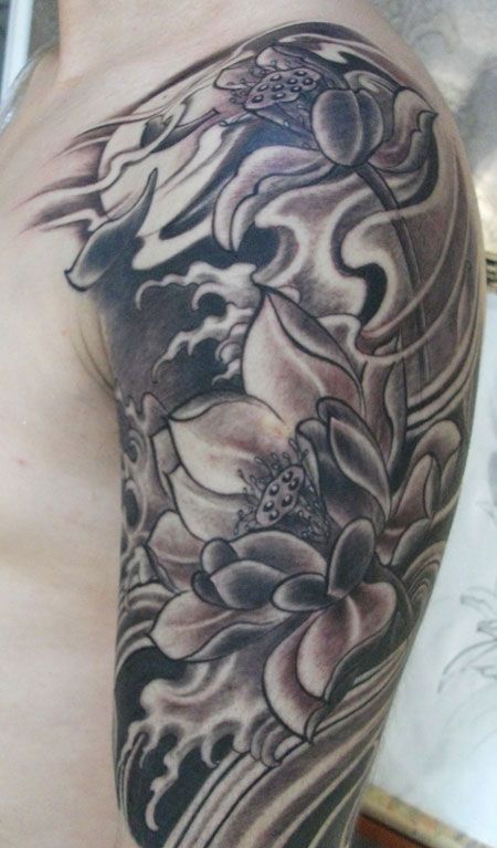 手臂上的传统荷花纹身图案