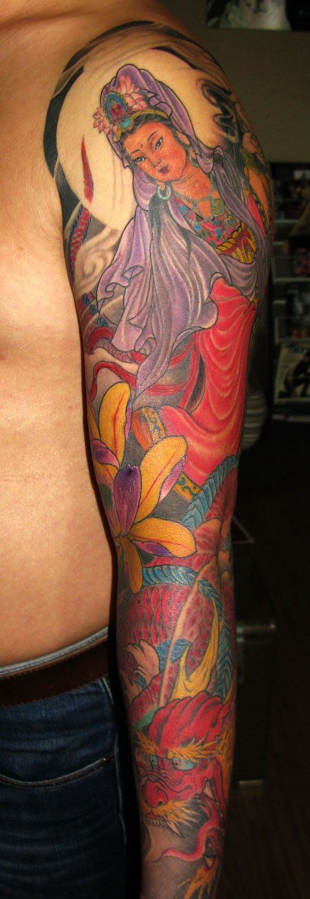花臂观音龙纹身图案