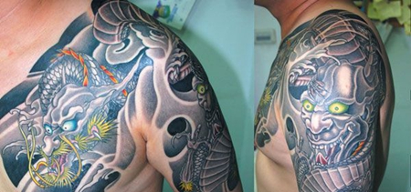 半甲般若龙纹身图案