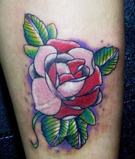 小腿上的玫瑰花纹身图片