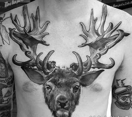 胸部3D黑色的鹿头纹身图案