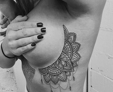 几何胸下繁花纹身图案