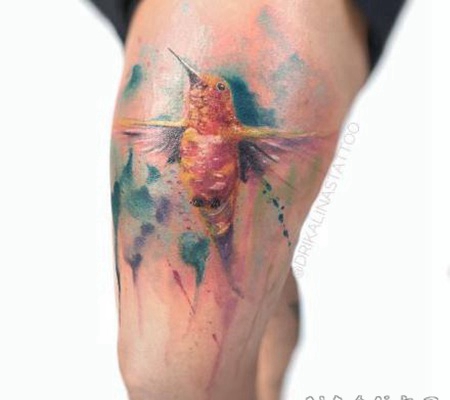 小清新的水彩飞鸟纹身图案