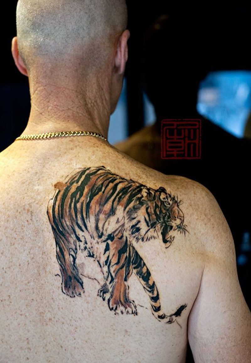 咆哮的下山虎彩绘纹身