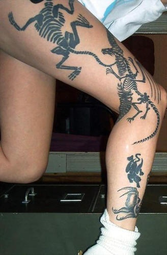 腿部黑色蜥蜴骨骼纹身图片