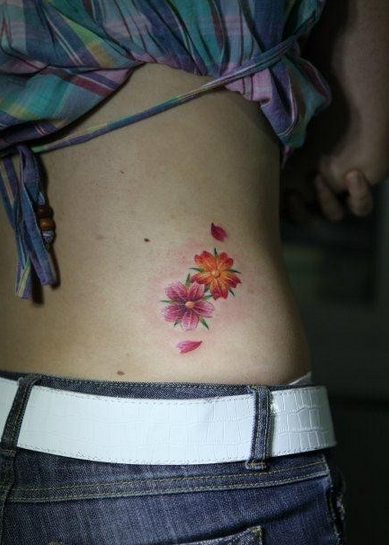 美女腰部精美小巧的樱花纹身图片