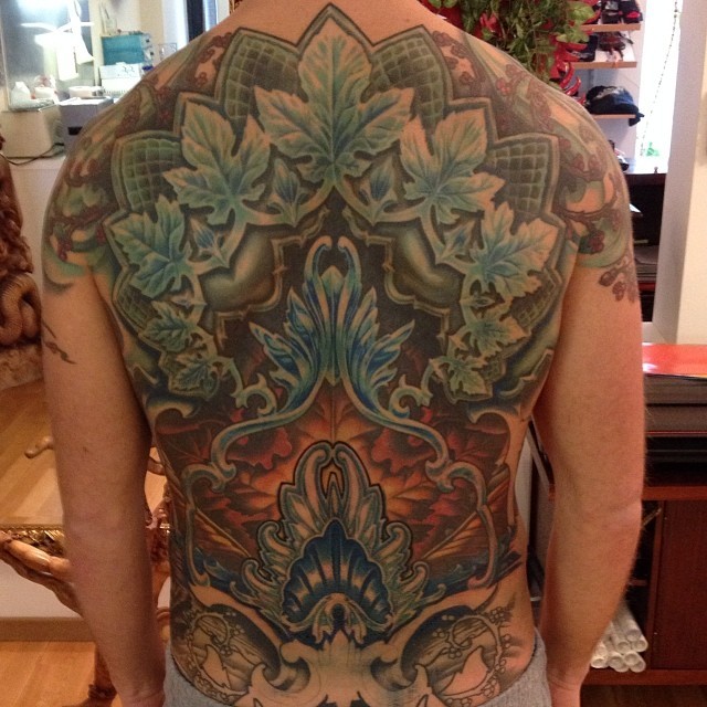 满背个性创意的树叶纹身图案
