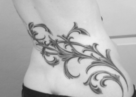 女性腰部个性藤蔓花刺青图案