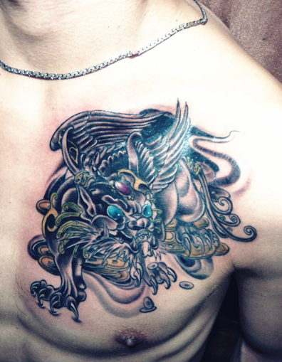 男性胸部华丽的貔貅纹身图案