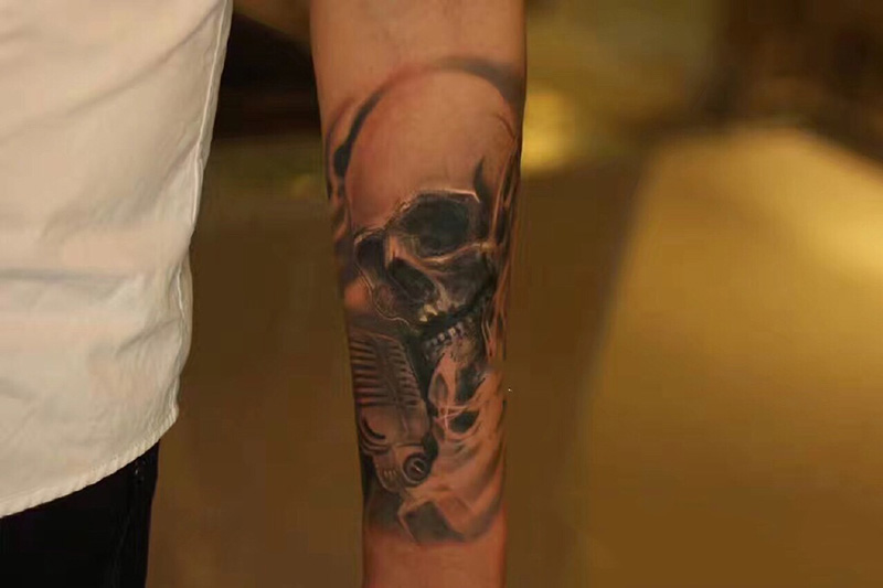 手臂唱歌的骷髅个性纹身图案