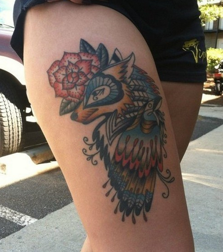 时尚女生大腿动物花朵个性纹身图案
