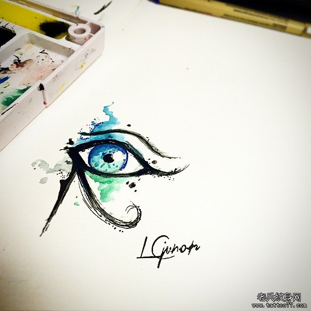 欧美泼墨荷鲁斯之眼纹身图案手稿