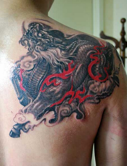 背部霸气的火麒麟纹身图案