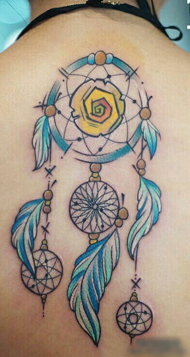 背部的彩绘捕梦网纹身图案