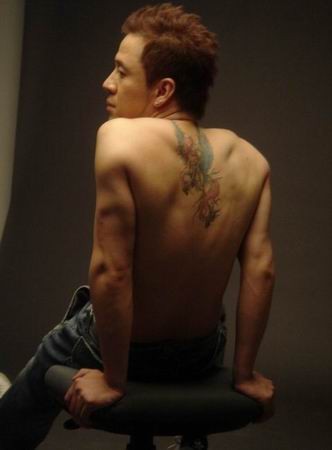 明星杨坤背部飞马彩绘纹身图案
