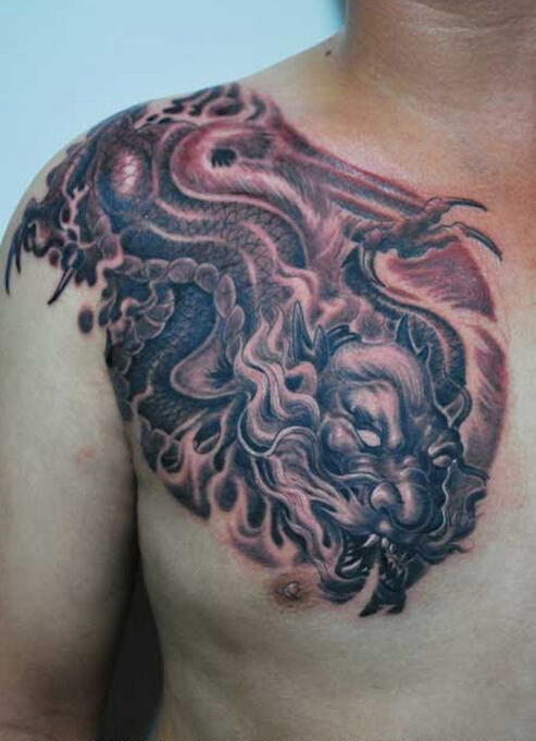 飞龙纹身图 男生肩