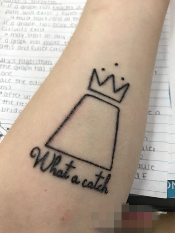 手臂上黑白几何元素皇冠简单线条英文字母图片