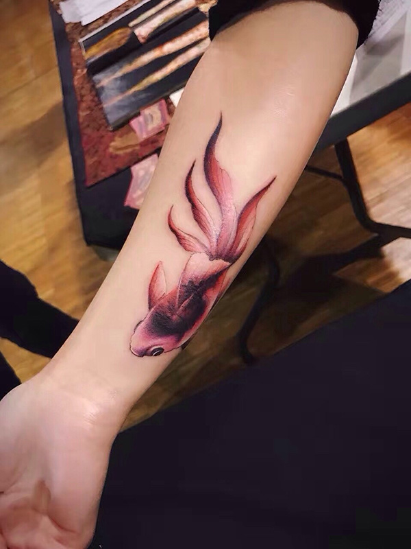手臂个性彩绘金鱼纹身图案