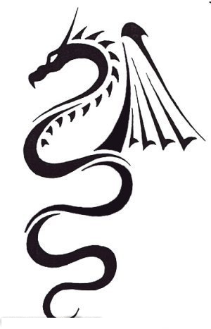黑色的展开翅膀的小火龙纹身动物简单线条纹身手稿