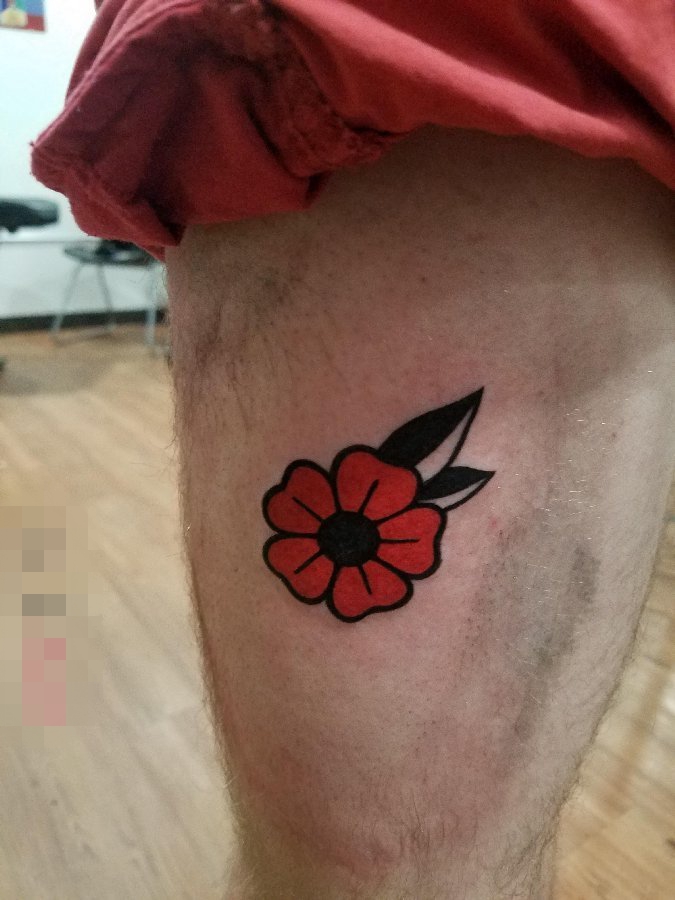 男生大腿上彩绘植物素材抽象线条花朵纹身图片