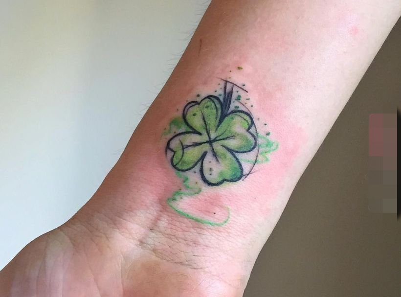 女生手臂上彩绘水彩四叶草文艺小清新四叶草纹身图片