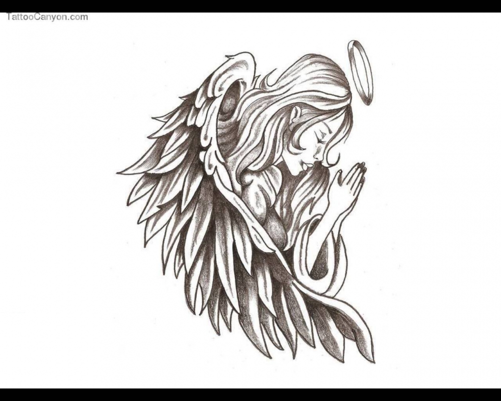 黑灰素描文艺唯美天使翅膀纹身手稿